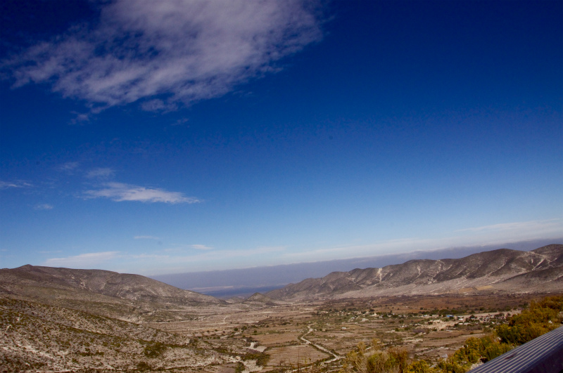 真ん中の山の間に小さい村が見える